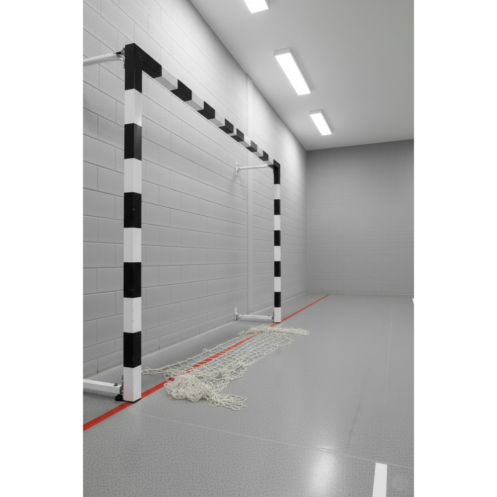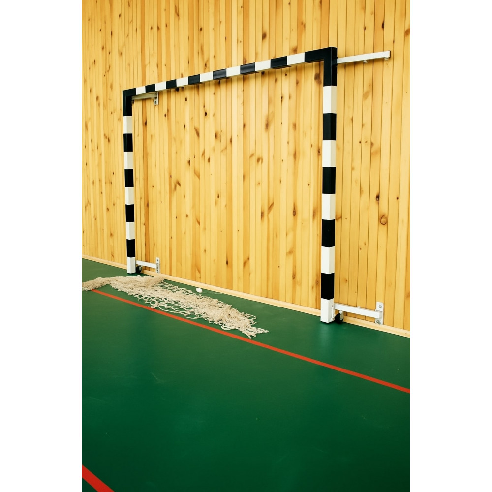 Ворота для мини-футбола и гандбола 2х3 м – складная пристеночная модель, выполненная из стального квадратного профиля 80х80 мм с порошковым покрытием, идеально подходит для использования в спортивных залах.